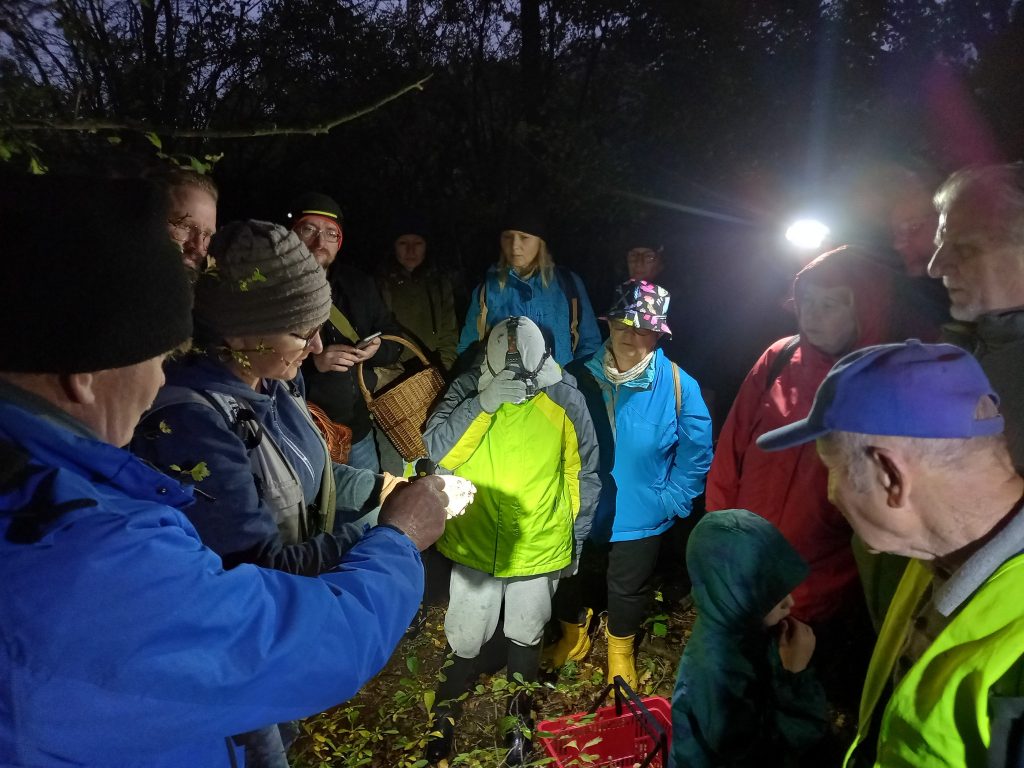Kończyliśmy nasze grzybo-poznawanie przy latarkach i czołówkach, które także mieli zapobiegliwi i przewidujący bieg wydarzeń uczestnicy wycieczki!