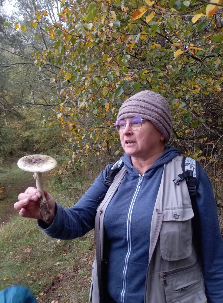 Inny akcent zapachowy tej części wycieczki stanowił owocnik muchomora cytrynowego, ten bowiem pachnie jak surowe ziemniaki, choć podczas naszej oceny węchowej zapach ten bywał kojarzony inaczej np. jako zapach rzodkwi. Tak to bywa niekiedy z zapachami grzybów, że różnym osobom różnie się one kojarzą, ja jednak przy tym muchomorze cytrynowym pozostałam dość ortodoksyjnie przy odczuciu jego woni jako piwnicy pełnej surowych (a nawet obranych) ziemniaków!