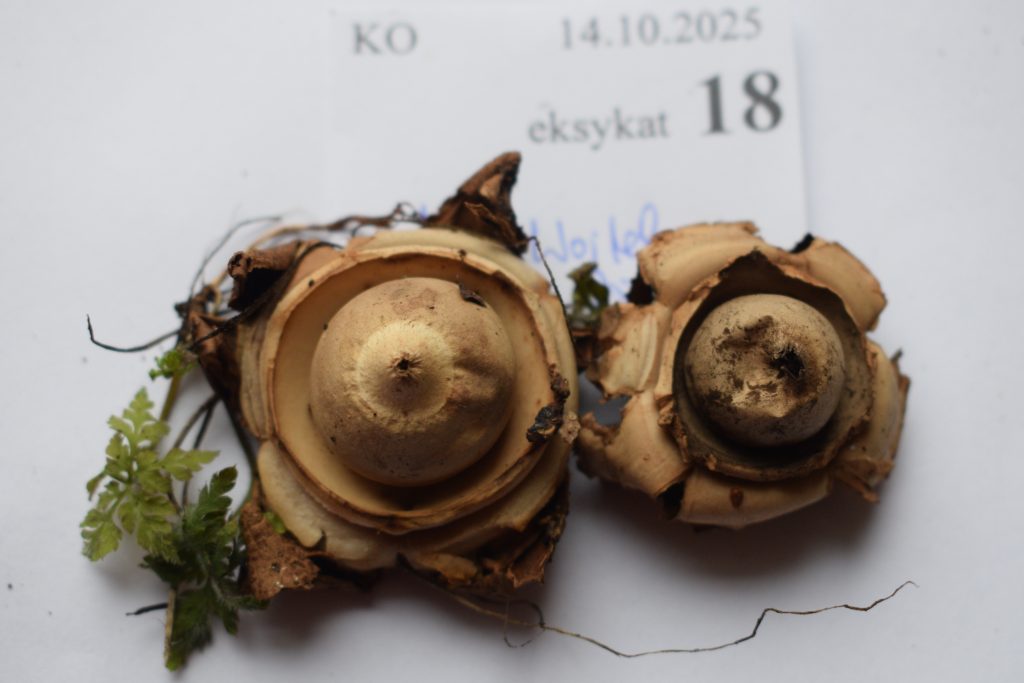 Później znaleziona została jeszcze piestrzyca kędzierzawa Helvella crispa, a podczas drogi powrotnej ukoronowanie naszej wycieczki stanowił, znaleziony przed jednego z młodszych uczestników, gwiazdosz potrójny Geastrum triplex! To znalezisko, jak również i te z pozostałych, które są oznaczone do gatunku, zostaną wpisane do Bazy Danych o Regionie!