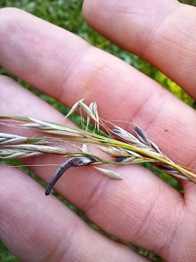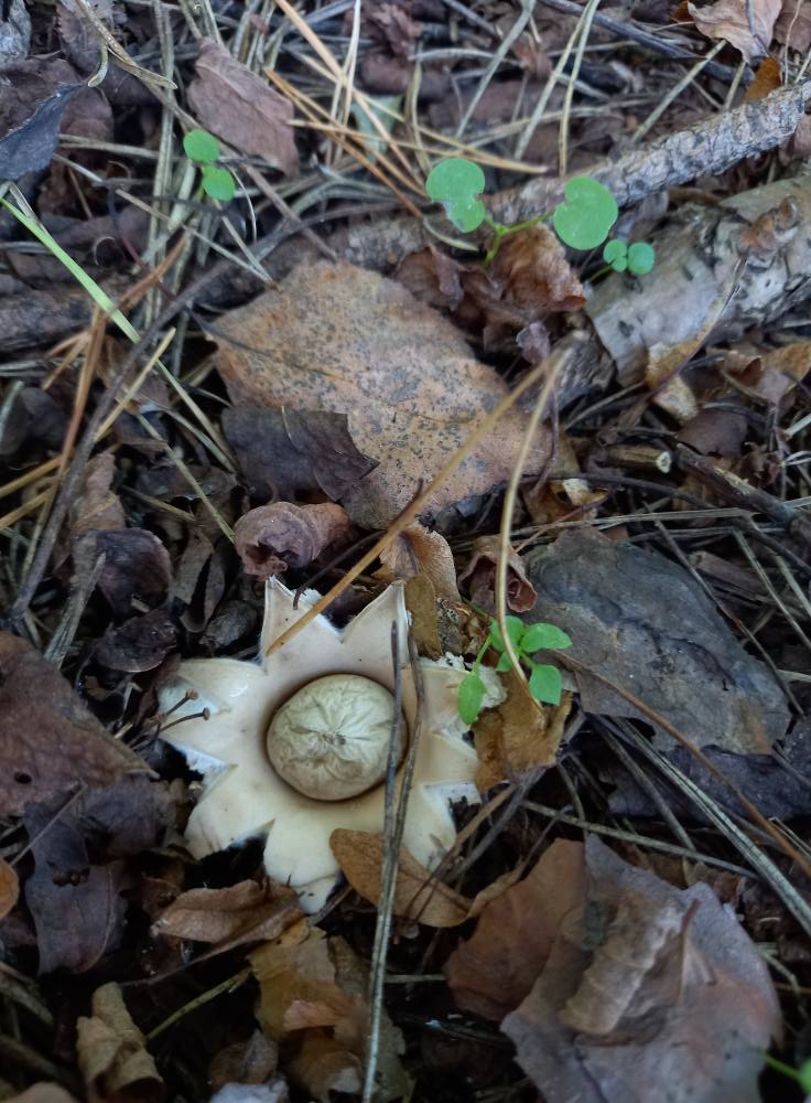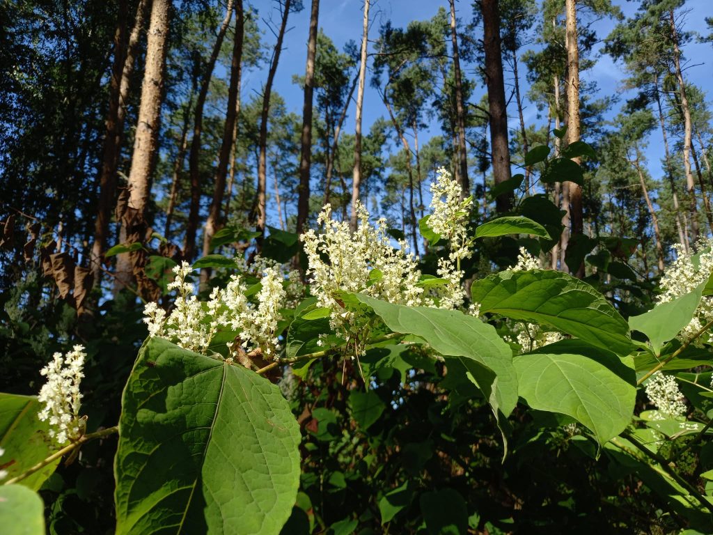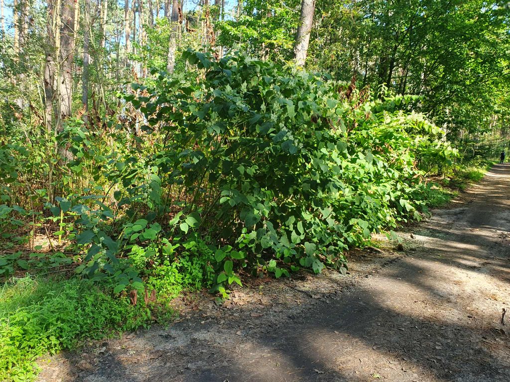 Dalej nasza trasa wiodła w kierunku łąk, leżących za sąsiadującym z miejscowością grądem. Przydroże trasy wiodącej jeszcze wśród zabudowań miejscowości okazało się być stanowiskiem jednego z gatunków kasztelańskich gwiazdoszy, a mianowicie gwiazdosza frędzelkowanego Geastrum fimbriatum. Tym sposobem Wagowo stało się kolejną miejscowością w regionie mogącą się pochwalić obecnością w nim grzybowego symbolu regionu – gwiazdosza. Na dalszej trasie, już na wysokości ogródków działkowych, zauważyliśmy zagon inwazyjnego rdestowca. Uwagę przykuły też dziwne „poziomki”, które okazały się poziomkówką indyjską Potentilla indica – uciekinierką z ogrodów. Przy drodze rósł też inwazyjny erechtites jastrzębcowaty Erechtites hieracifolia, ale z braku czasu, postanowiliśmy nie zwracać na niego uwagi. Po drodze mijaliśmy wyglądające żałośnie monokultury sosnowe. Duża część drzew była zaatakowana przez jemiołę rozpierzchłą Viscum album ssp. austriacum – podgatunek jemioły atakujący głównie sosnę. Kiedyś była to wielka rzadkość ale przy obecnych zmianach klimatycznych staje się teraz poważnym problemem, zwłaszcza w Lasach Czerniejewskich. Mijaliśmy też pozostałości starego grądu, zniekształconego nasadzeniami sosny. Akurat niedawno wykonano tam rębnię gniazdową, toteż starodrzew ten poszatkowany został siecią powierzchni, na których wycięto drzewa. Pozostałe resztki drzewostanu zostaną wycięte w niedalekiej przyszłości. Zawsze szkoda takich lasów, wiekowych dębów i sosen. Pojawia się pytanie: czy nie można by choć części takich lasów pozostawiać samym sobie? Po pokonaniu kolejnego odcinka trasy dotarliśmy do kolejnego celu naszej wyprawy – a mianowicie sporej połaci łąk.