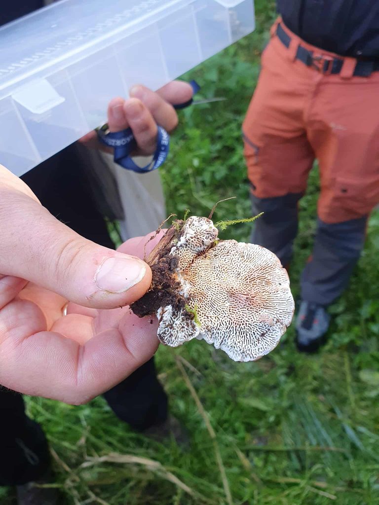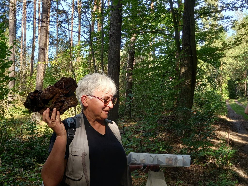 Wracając do centrum Wagowa przeszliśmy lasem wzdłuż opłotowania ogródków działkowych. Tam miłą niespodzianką okazały się rosnące w ilości kilku sztuk borowiki szlachetne, które zebrała jedna z uczestniczek wycieczki. Przechodząc ponownie dróżką z gwiazdoszami udało się wypatrzeć ciekawego motyla – pazika brzozowca Thecla betulae, który jednak uciekł z siatki i nie pozwolił się oglądać uczestnikom wycieczki. A szkoda!