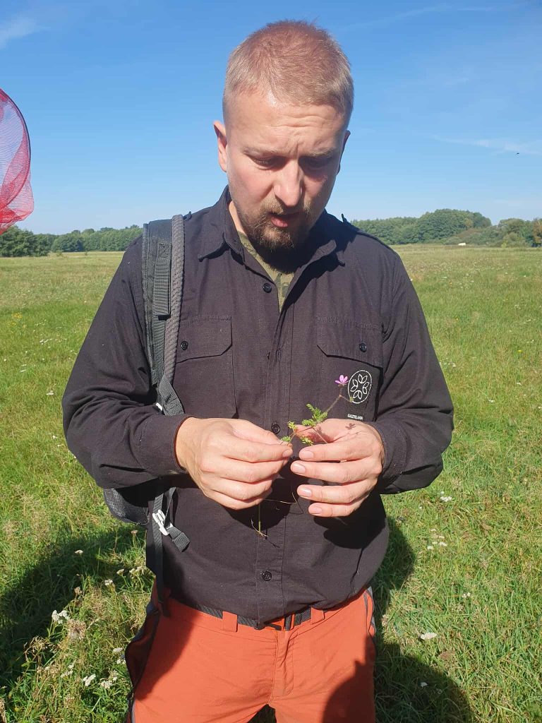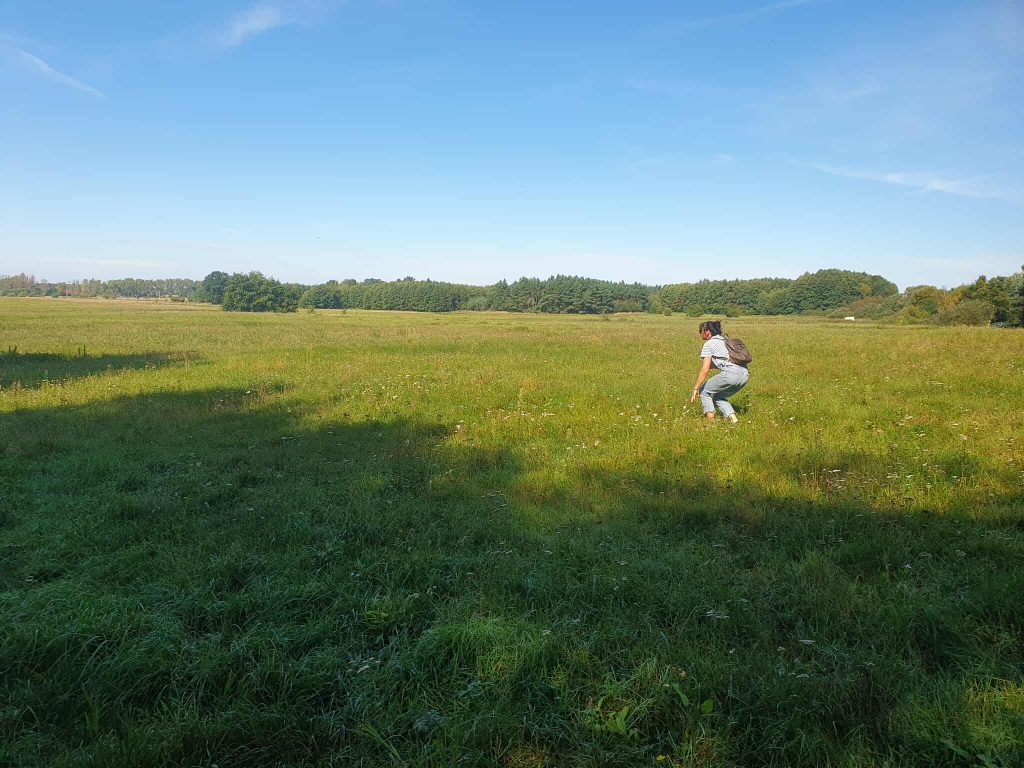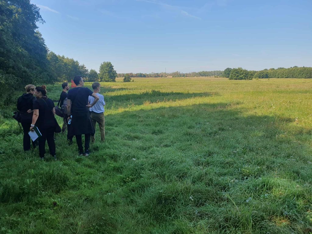 Dokonaliśmy obserwacji flory łąkowej tego miejsca. Jednym z gatunków, który zwrócił naszą uwagę był sit rozpierzchły Juncus effusus i skupiony Juncus conglomeratus. Widoczny był rów melioracyjny służący odwadnianiu tego miejsca. Dyskutowaliśmy na temat walorów tychże łąk. Wiele wskazywało na ich degenerację i przesuszenie, m.in. obecność iglicy pospolitej Erodium cicutarium czy lnicy pospolitej Linaria vulgaris. Zastanawialiśmy się jak działać dla ich dobra i co im zagraża.