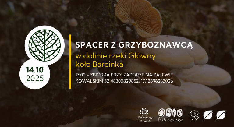 14 PAŹDZIERNIKA 17:00 – 18:30 zbiórka w Barcinku przy tamie na zalewie Kowalskie Jesień sprzyja poszukiwaniom owocników grzybów. Zapraszamy na „Spacer z grzyboznawcą”, podczas którego odkrywać będziemy dolinę Główny od zbiornika zaporowego Kowalskie w kierunku Wierzonki. Podczas tej wyprawy skupimy się na grzybach o dużych owocnikach, choć nie zabraknie kontekstów botanicznych, siedliskowych i opowieści o […]